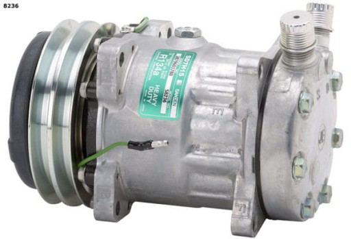 Sprężarka uniwersalna klimatyzacji japońskiej firmy Sanden model SD7H15 znajdzie zastosowanie w układach klimatyzacji maszyn budowlanych, ciągników rolniczych (traktorów) producentów: JCB, Volvo, New Holland. Sprężarka 8236 pracuje na napięcie 24V, posiada koło pasowe o średnicy 132mm wykorzystujące pasek A6, głowica wykorzystana w sprężarce typ JE. Numer OEM przypisany do urządzenie wg. modelu maszyn budowlanych oraz ciągników rolniczych : 8150136, 8880100076, 12304999, 11007857, 078112