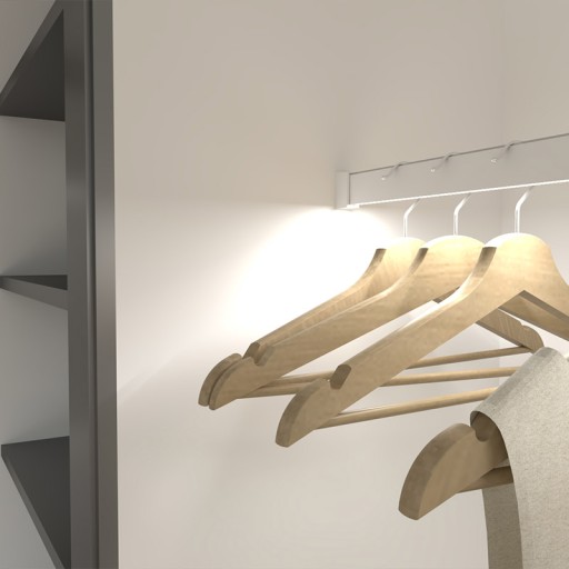 Reling Slim LED PIR z wbudowanym wyłącznikiem PIR to prostokątny drążek ubraniowy do szaf.