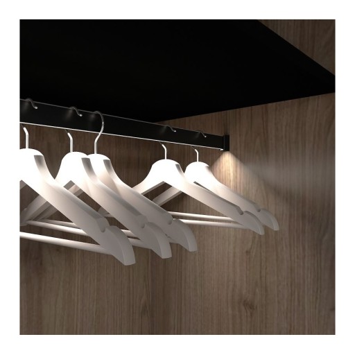 Reling Slim LED PIR z wbudowanym wyłącznikiem PIR to prostokątny drążek ubraniowy do szaf.