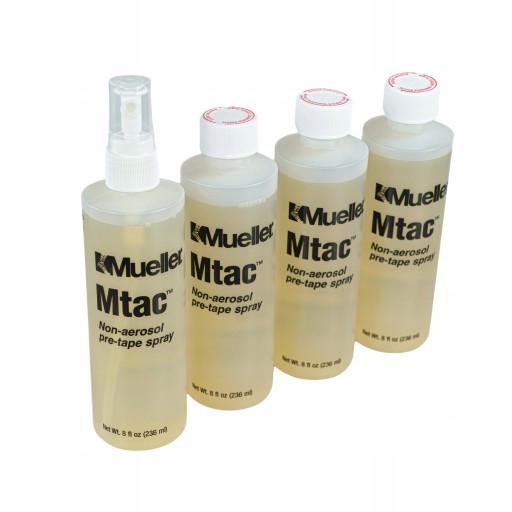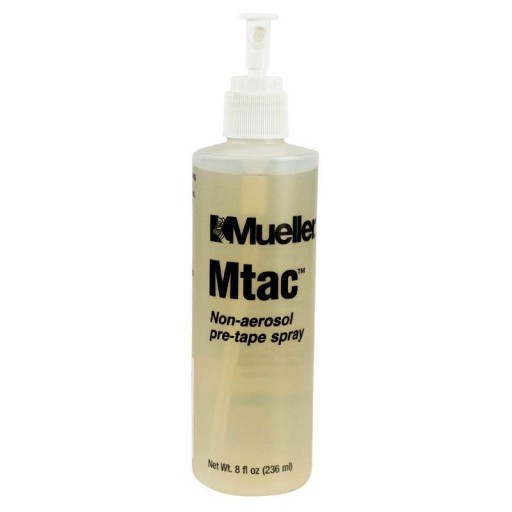 Szybkie schnięcie i doskonałe utrwalenie aplikacji taśm do kinesiotapingu uzyskasz z klejem Mtac firmy Mueller.