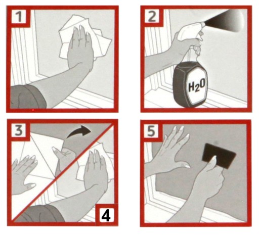 - Następnie zwilż okno wodą. Użyj do tego opryskiwacza do roślin. Teraz umieść folię okienną na oknie i dobrze ją dociśnij.