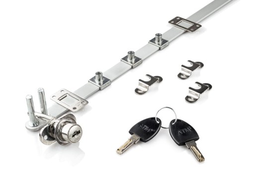 Zamek centralny meblowy ogranicza dostęp do rzeczy schowanych w szafkach biurowych wyposażonych w szuflady. Konstrukcja zamka centralnego wyróżnia się tym, że jego mechanizm pozwala na zamknięcie kilku szuflad jednocześnie. Wysokiej jakości produktu marki ATM. Długość listwy: L- 500 Skład zestawu: Listwa zamka Zamek Mocowanie Listwy (A) x 2 Zaczep (B) x 3 Blokada szuflady x3