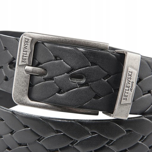 Czarny pasek wykonano ze skóry naturalnej, licowej, która świetnie komponuje się kolorystycznie z klamrą w srebrnym odcieniu. Świetnie pasuje do każdej stylizacji - powierzchnię paska ozdobiono wzorem modnej plecionki - to unikatowy i przyciągający spojrzenie dodatek zarówno dla kobiet, jak i mężczyzn.