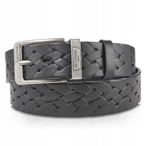 Mocny, skórzany pasek z plecionym wzorem i stylową klamerką