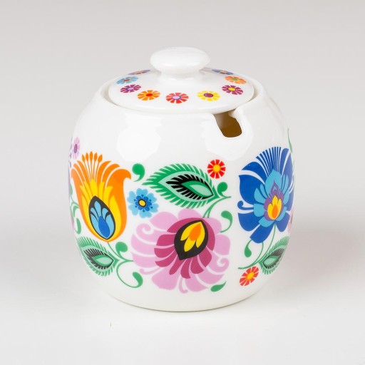 Cukiernica wykonana jest z ceramiki co sprawia, że prezentuje się niezwykle elegancko i jest bardzo wygodna w użyciu. Dodatkowo nasza nowa cukiernica ma lepsze wzornictwo, inny kształt oraz znajduje się otwór na łyżeczkę ;)