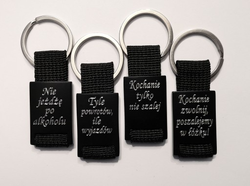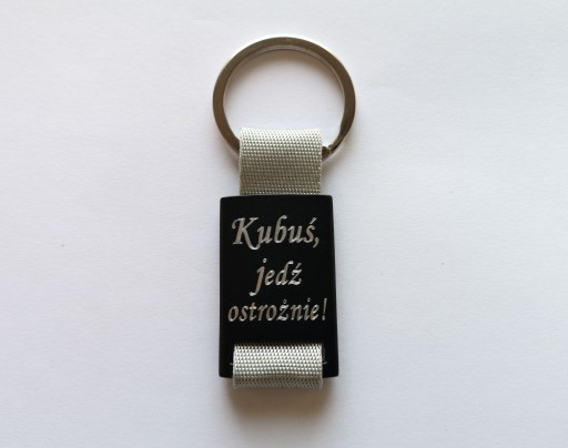 Brelok wykonany z metalu ( anodowane na czarno aluminium )