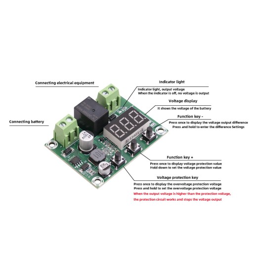 Moduł ochrony podnapięciowej akumulatora, zabezpieczenie podnapięciowe obciążenia akumulatora automatycznie odzyskuje dedykowaną tablicę kontrolną wyjścia 12 V.