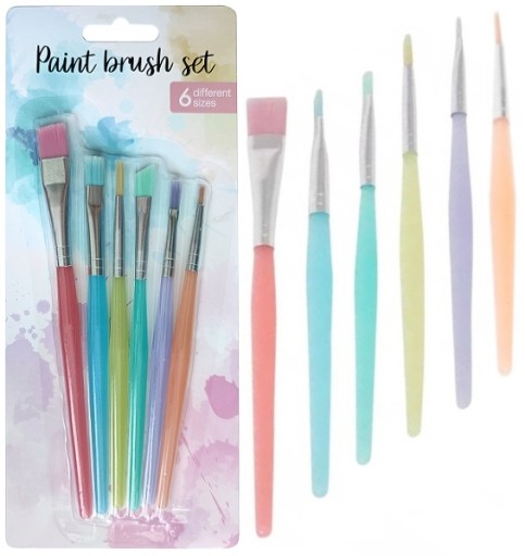 PĘDZLE MALARSKIE PĘDZELKI DO MALOWANIA ZESTAW 6szt Pastelowe Kolory
