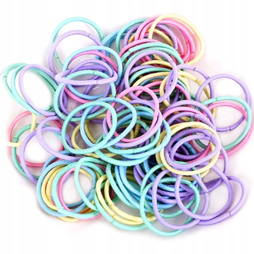 ✅W opakowaniu znajduje się ok 100 sztuk gumek w kolorze mix pastel