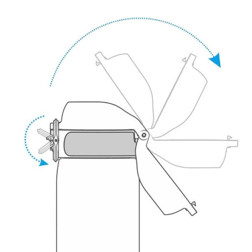Wymiary odpowiednie dla większości uchwytów na kubek. Zintegrowana rączka do noszenia lub przytroczenia, którą można schować w wieczku. Zakrzywiony profil wieczka zapobiega upadkom i ułatwia trzymanie oraz wyciąganie z torby. Wielkość idealna dla pewnego chwytu dłonią.