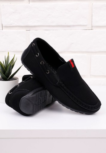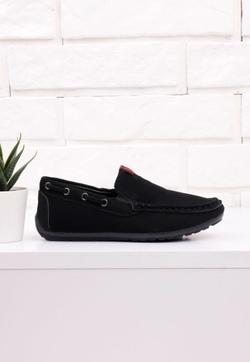 Mokasyny CHŁOPIĘCE CZARNE ZAMSZOWE WSUWANE PÓŁBUTY