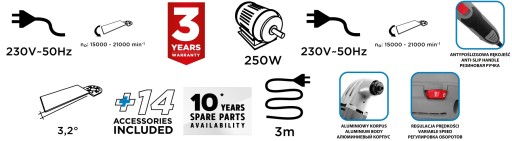 Urządzenie wielofunkcyjne 250W, ilość oscylacji 15000-21000 min⁻¹,