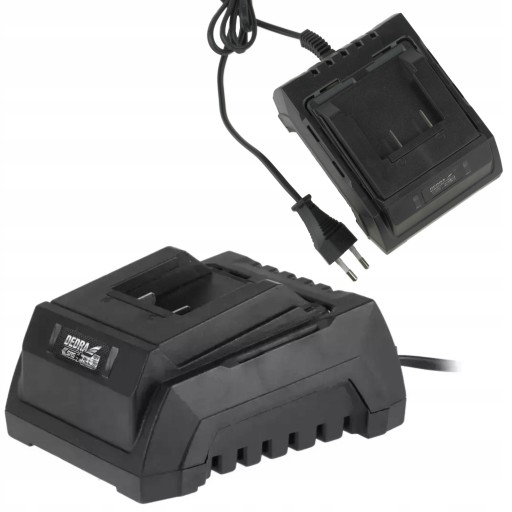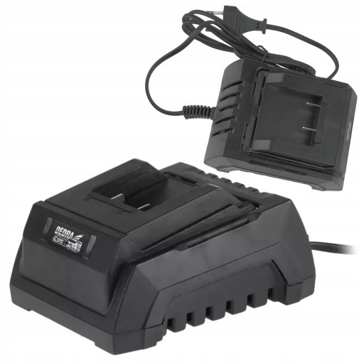 To produkt dedykowany do ładowania baterii z linii SAS+ALL (DED7032, DED7034, DED7035, DED6936, DED6937). Baterię 2.0Ah naładujemy w ciągu 1h, natomiast baterię 4.0Ah w 2h, a 5.0Ah w 2h20min. Ładowarka wyposażona jest w dwie diody: jedna informująca o podłączeniu do sieci, druga informująca o zakończonym procesie ładowania baterii.