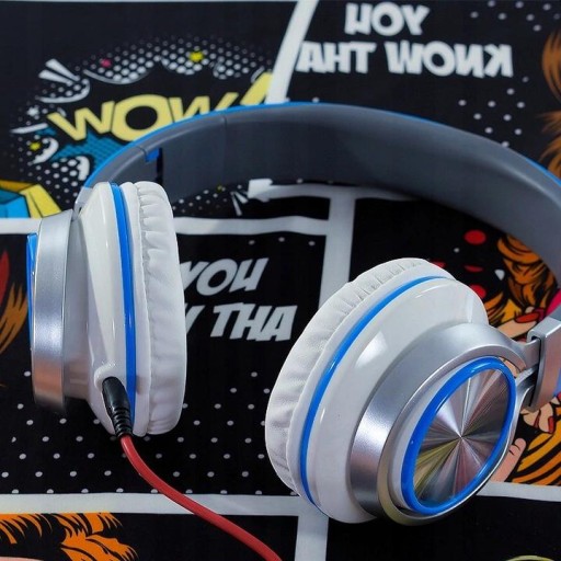 Nauszne słuchawki przewodowe z mikrofonem i wejściem jack 3,5mm do smartfonów, komputerów, tabletów, mp3 / mp4.