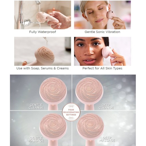 Electric Facial Beauty Cleanser Massage Brush Waterproof Silicone Face Safe Skin Friendly Soft Silicone Bristles Scrubber|Powered Facial Cleansing Devices
