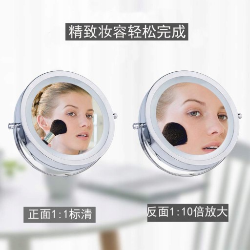 10 Times Magnification Desktop Makeup Mirror With LED Lights, 360 Degrees Rotation, Double Side 7-inch LED Lighting Makeup Mirror (silver)