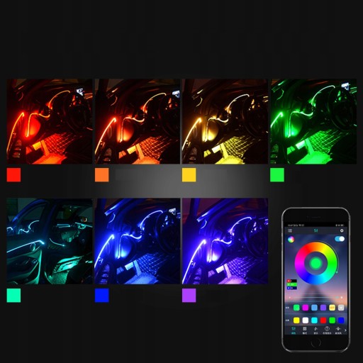 Oświetlenie wnętrza samochodu neon LED Oświetlenie otoczenia Listwa świetlna Sterowanie za pomocą aplikacji