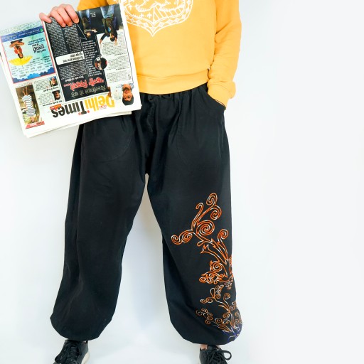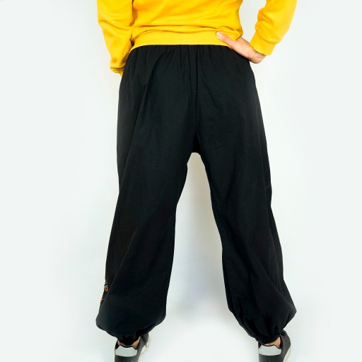W pasie zamocowana jest gumka a szczuplejszym dodatkowy sznurek pomaga utrzymać pumpy w żądanym miejscu:) Na udach mają dwie głębokie kieszenie. Dół nogawek również posiada ściągacz (jeśli masz większy rozmiar i gumki są nie komfortowe to je rozetnij - tak zrobiłby każdy zaradny mieszkaniec Indii :)