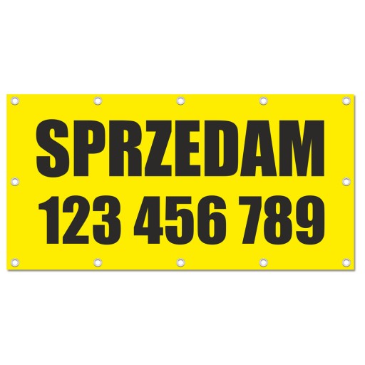 Baner drukowany na podstawie gotowego projektu (żółte tło, czarne napisy) ze zmianą treści - podaj nam dane do wpisania