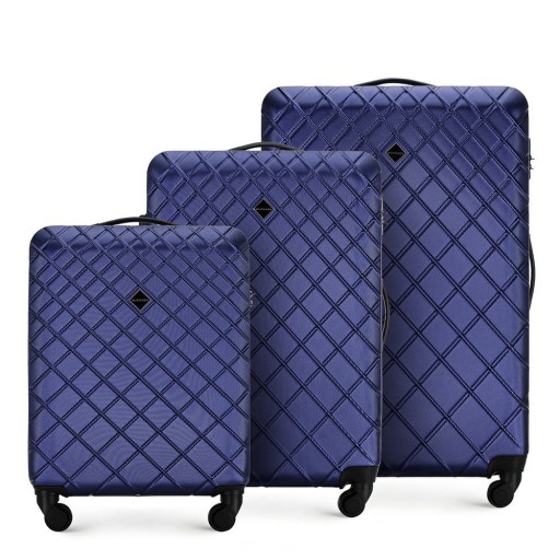 Zestaw lekkich i pojemnych walizek WITTCHEN 56-3A-55S-91 w kolorze granatowym, z kolekcji Classic wykonany został z ABS-u, który charakteryzuje się wysoką odpornością na uszkodzenia i zadrapania. Walizka kabinowa spełnia wymogi bagażu podręcznego (EasyJet, LOT, Lufthansa, Ryanair, Wizz Air). Każda walizka wyposażona jest w cztery obrotowe kółka ułatwiające przemieszczenie się z bagażem, wysuwaną aluminiową rączkę, oraz 2 gumowe uchwyty do ręki (przy walizce kabinowej tylko uchwyt górny). Wewnątrz walizki posiadają komorę główną z regulowanymi pasami zabezpieczającymi bagaż przed przemieszczaniem, komorę zamykaną na suwak i 2 kieszenie, jedną z siatki i drugą mniejszą, obie zamykane na zamek. Dostęp do wnętrza przez osoby niepożądane uniemożliwia wyposażenie walizek w zamek szyfrowy, który jest dodatkową zaletą bagażu.
