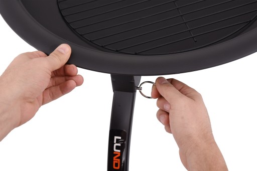 - 3 składane stalowe nóżki chronią podłoże przed kontaktem z rozgrzaną misą oraz ułatwiają transport i przechowywanie