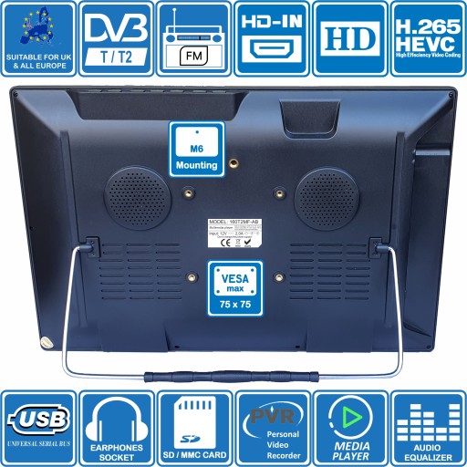 - Model z 2022 roku. CYFROWY TELEWIZOR LED 15,4 cala: z DVB-T i DVB-T2 dla programów Freeview, Freeview HD i ogólnoeuropejskiej telewizji Free to The Air. HDMI, wejście/wyjście AV 3,5 mm, USB PVR i odtwarzacz multimedialny oraz wbudowany tuner FM.