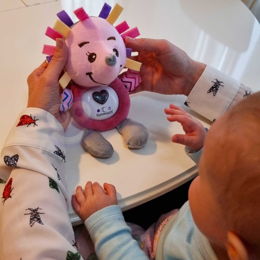 Interaktywny Pluszowy Jeżyk uspokoi oraz uśpi Twoje dziecko. Zabawka posiada opcję włączenia kołysanki dla naszej małej pociechy oraz posiada opcję wyświetlania kolorowych światełek, dzięki którym nasz maluch nie znudzi się zabawką. Ten miękki w dotyku miś stanie się przyjacielem naszego dziecka już od najmłodszych lat. Zabawka jest przystosowana dla niemowląt dlatego jest miękki wypełniony watą przez co nie musimy martwić się o to że nasza pociecha może coś sobie zrobić. Dodatkowo pluszaka bezpiecznie oraz łatwo można czyścić (wyjmując mechanizm) bez obaw o jakiekolwiek uszkodzenia.