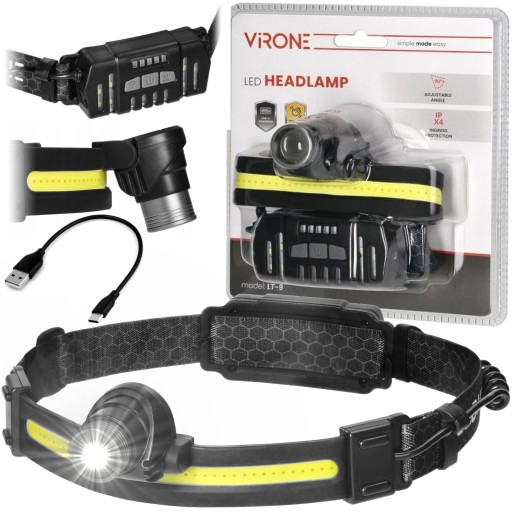 Dzięki wbudowanemu akumulatorowi czołówka marki Virone pozwala na długotrwałe i wygodne użytkowanie, bez konieczności dokupowania jednorazowych baterii.