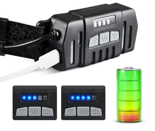 ⭐ WŁĄCZNIK NA RUCH RĘKI - CZUJNIK RUCHU - dodatkowo, czołówka wyposażona jest w praktyczny czujnik, który umożliwia uruchomienie latarki za pomocą ruchu ręki.