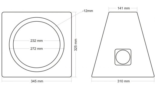 - rozmiary skrzynki: podstawa 345 x 310, wysokość 325 mm