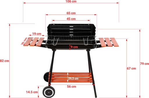 - Produkt posiada wszelkie wymiary i cechy zgodne z normą dotyczącą grilli węglowych EN 1860-1:2013 + A1:2017