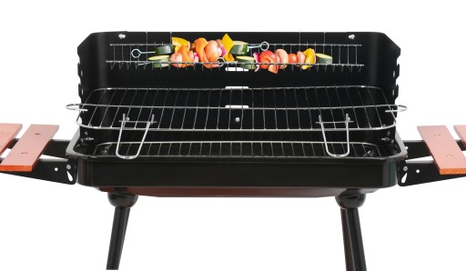 GRILL WĘGLOWY Z PÓŁKAMI, RUSZT 53X33CM