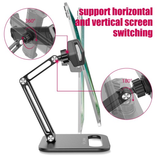 Możemy również dowolnie i płynnie obracać samych uchwytem, a co za tym idzie, zamontowanym tabletem / telefonem w zakresie 360 stopni, co pozwala na idealne jego dopasowanie do naszych potrzeb, zyskując w ten sposób szybką zmianę położenia z pionu, na poziom.
