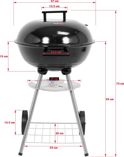 - Produkt posiada wszelkie wymiary i cechy zgodne z normą dotyczącą grilli węglowych EN 1860-1:2013 + A1:2017