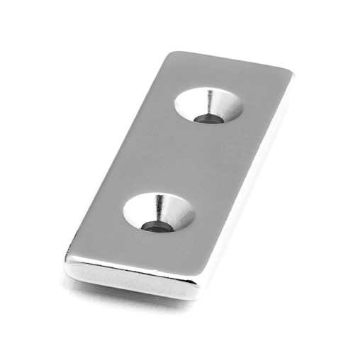 Magnesy neodymowe płytkowe z jednym lub dwoma otworami pod wkręt. Otwory umożliwiają przykręcenie magnesu do powierzchni niemagnetycznej. Dzięki połączeniu stopu neodymu (Ne), żelaza (Fe) i boru (B) magnesy te, nawet niewielkiej wielkości, są bardzo silne. Magnesy neodymowe pod śrubę mogą być wykorzystywane do pracy w temperaturze od 80° C do 150° C , dlatego jego zastosowanie jest bardzo wszechstronne.