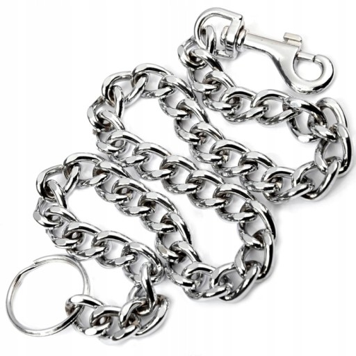 Nowy, chromowany łańcuszek do przymocowania zegarka kieszonkowego, portfela, kluczy i innych drobnych przedmiotów. Z jednej strony zakończony karabińczykiem, z drugiej - metalowym kółkiem.