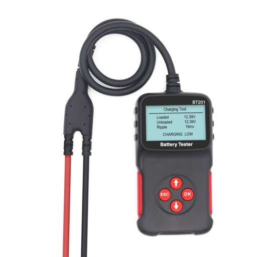 BT201 baterii 12V Tester pojemności Tester akumulatora samochodowego uniwersalny BT201 to tester akumulatora samochodowego 12V, odpowiedni dla właścicieli samochodów i konserwacja samochodu.Tester baterii może szybko odczytać ważne dane o akumulator samochodowy, takie jak napięcie, rezystancja wewnętrzna, prąd rozruchu zimnego i pojemność akumulatora, stan naładowania akumulatora i stan naładowania.Możliwość zapewnienia dokładnych wyników testów, obliczenia możliwości i wieku zimnego rozruchu akumulatora, co pozwala na szybsze i bardziej precyzyjne naprawy pojazdów.BT201 może wykrywać zwykłe zalane baterie o pojemności 100-2000 CCA, płaskie płyty AGM, spirale AGM i akumulatory żeloweWyświetlacz: 128*64Przycisk funkcyjny: góra, dół, OK,ESCTemperatura pracy: od-20 do 60 ℃Temperatura przechowywania: od-20 do 70 ℃Moc zewnętrzna: 12VJęzyk wsparcia: angielski, niemiecki, francuski, portugalski, włoski, rosyjski.Uwaga:Ten produkt jest odpowiedni do akumulatora rozruchowego 12V,Napięcie robocze wynosi DC9 ~ 18V, proszę nie używać go do testowaniaBateria litowa.Kolor: czarnyMateriał: ABSZawartość opakowania:1 x narzędzie diagnostyczne do samochodów1 x instrukcja w języku angielskimTylko powyższa zawartość opakowania, inne produkty nie są uwzględnione.Uwaga: fotografowanie światłem i różne wyświetlacze mogą spowodować, że kolor przedmiotu na zdjęciu będzie trochę inny niż rzeczywisty. Błąd pomiaru wynosi +/- 1-3cm.