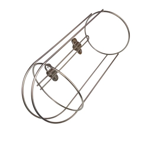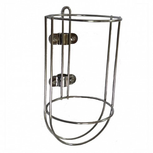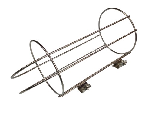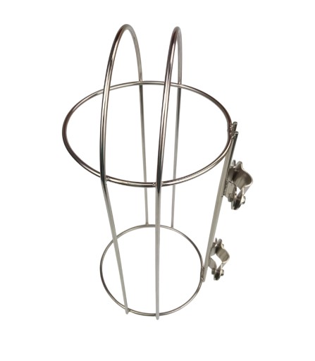 Pojedynczy kosz na odbijacz wykonany ze stali nierdzewnej, przykręcany do relingu.
