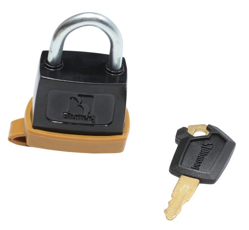 Kłódka z kluczykiem stosowana w maszynach budowlanych CAT.