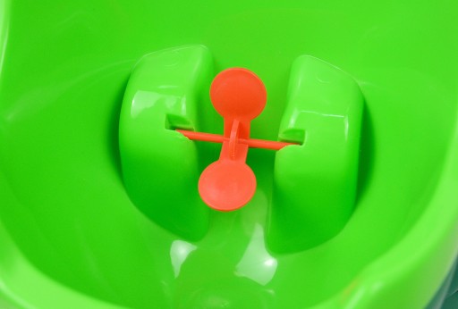 Pisuar, nocnik dla chłopca w kształcie żaby. Idealny produkt do nauki sikania w pozycji stojącej, bez konieczności stosowania specjalnych podestów do sedesu. Zapewni dziecku mnóstwo frajdy i nauczy go celowania w sam środek podczas załatwiania potrzeb fizjologicznych. Zamontowany wewnętrzny „kołowrotek” zapewnia dużo frajdy chłopcom a ich „celność” gwarantuje suchą powierzchnię dokoła pisuaru.