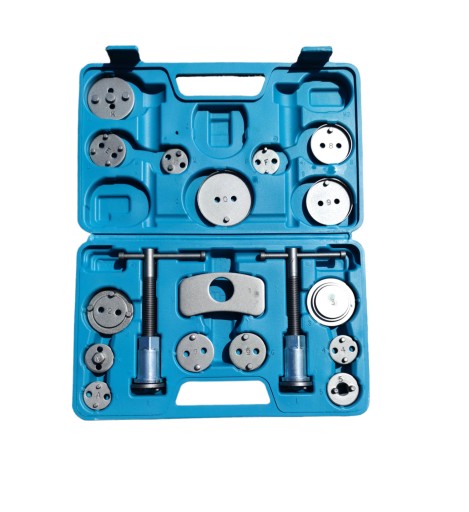 Profesjonalny 18 elementowy zestaw renomowanej firmy FALON-TECH, jest niezbędnym narzędziem przy wymianie klocków w pojazdach wyposażonych w hamulce tarczowe.