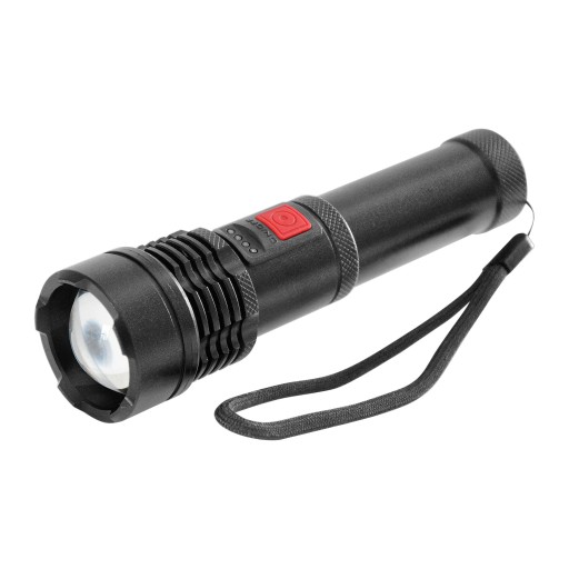 Taktyczna latarka LED COB 12W z zoomem (regulacja szerokości padania wiązki światła) i dużym akumulatorem 2200 mAh, który pozwala na wielogodzinne korzystanie z latarki.