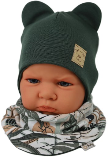 Komplet niemowlęcy : dwuwarstwowa czapeczka + apaszka