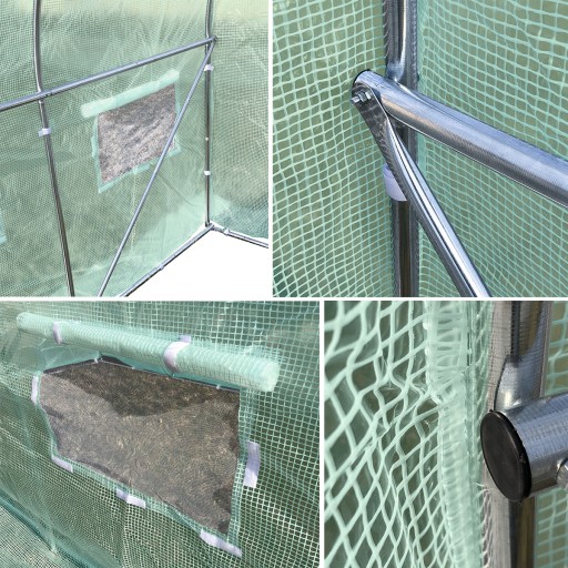 - W zestawie znajduje się wytrzymała folia PE 140 g/m2 z filtrem UV4, którą wzmocniliśmy dodatkowo poprzez wtopienie siatki PP