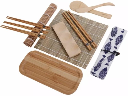 Oryginalny zestaw do robienia i serwowania sushi. Idealny prezent dla miłośników japońskiej kuchni, ale nie tylko. Do naszego zestawu dołączyliśmy przepisy i wskazówki do przygotowania sushi. Akcesoria do sushi są wykonany w 100% z naturalnego bambusa, który jest ekologicznym i biodegradowalnym materiałem bez szkodliwego wpływu na Twoje zdrowie. Bez BPA.