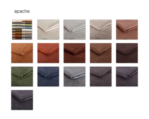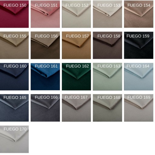 Materiał meblowy, obiciowy, dekoracyjny - FUEGO, jest tkaniną podklejaną, bardzo wytrzymałą.Jest niezwykle miły i ciepły w dotyku oraz posiada delikatny włos.Kolekcja obejmuje 21 odcień kolorystyczny. Zastosowanie: tapicerstwo, krawiectwo, itp. Idealnie wygląda jako obicie mebli, narzuta, poduszka dekoracyjna, zasłona, kotara, zagłówek (wezgłowie).