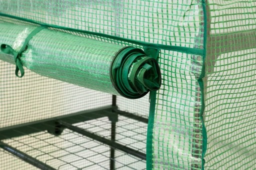 Szklarnia jest bardzo łatwa i szybka w montażu. Szerokie rolowane drzwi z zamkiem błyskawicznym stwarzają możliwość wentylacji bądź ochrony przed warunkami atmosferycznymi.