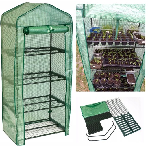TUNEL STOJĄCY FOLIOWY OGRODOWY SZKLARNIA DO POMIDORÓW SADZONEK WARZYW 4 PÓŁKI
