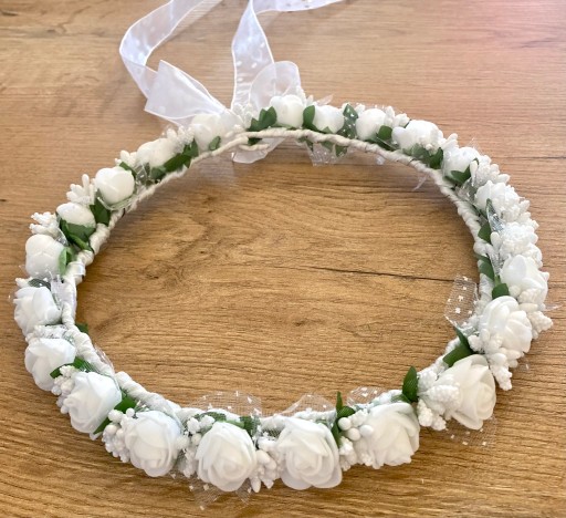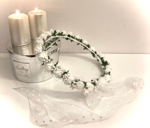 Przedmiotem sprzedaży jest wianek komunijny - polski produkt wykonany z najwyższą starannością oraz z dobrej jakości produktów.