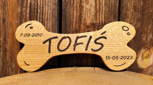 Na tej aukcji możesz zakupić tabliczkę z imieniem dla psa, w kształcie kości.